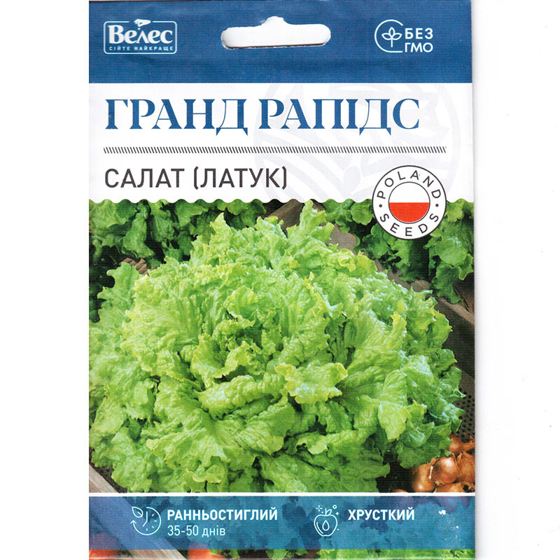 Насіння салату латука раннього «Гранд Рапідс» (5 г) від ТМ «Велес», Україна